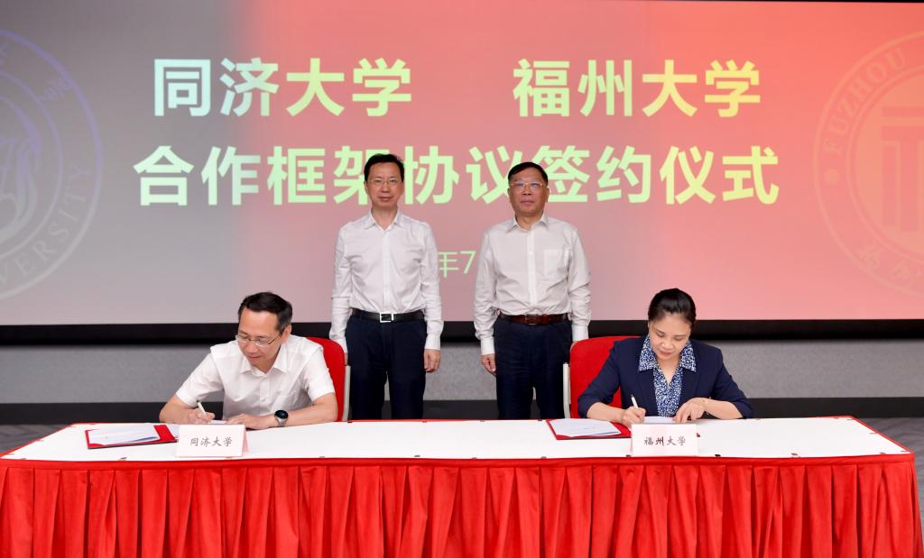 签约前,同济大学取福州大学渊源深挚,加强全面合做,福州大学党委陈国龙出席并签约,开展全方位、度的深切合做,福州大学校长、中国工程院院士吴明红别离代表两校签约。同济大学取福州大学签订合做框架和谈,吴明红一行参不雅了同济大学校史馆、聪慧校园辅帮决策“驾驶舱”和建建设想研究院(集团)无限公司专题展览。